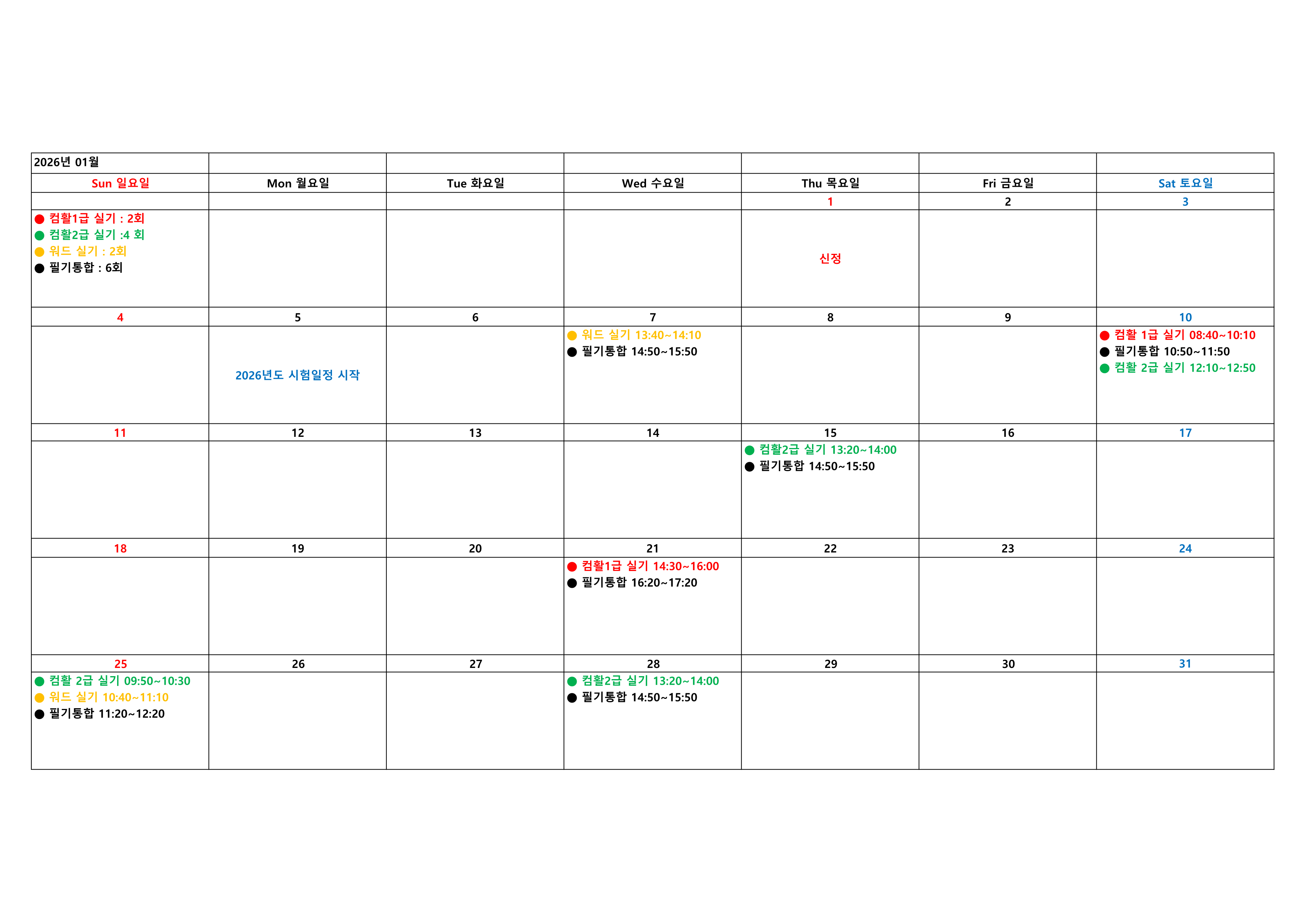 통영상공회의소 2026년 1월 상시시험 일정표를 게시합니다.