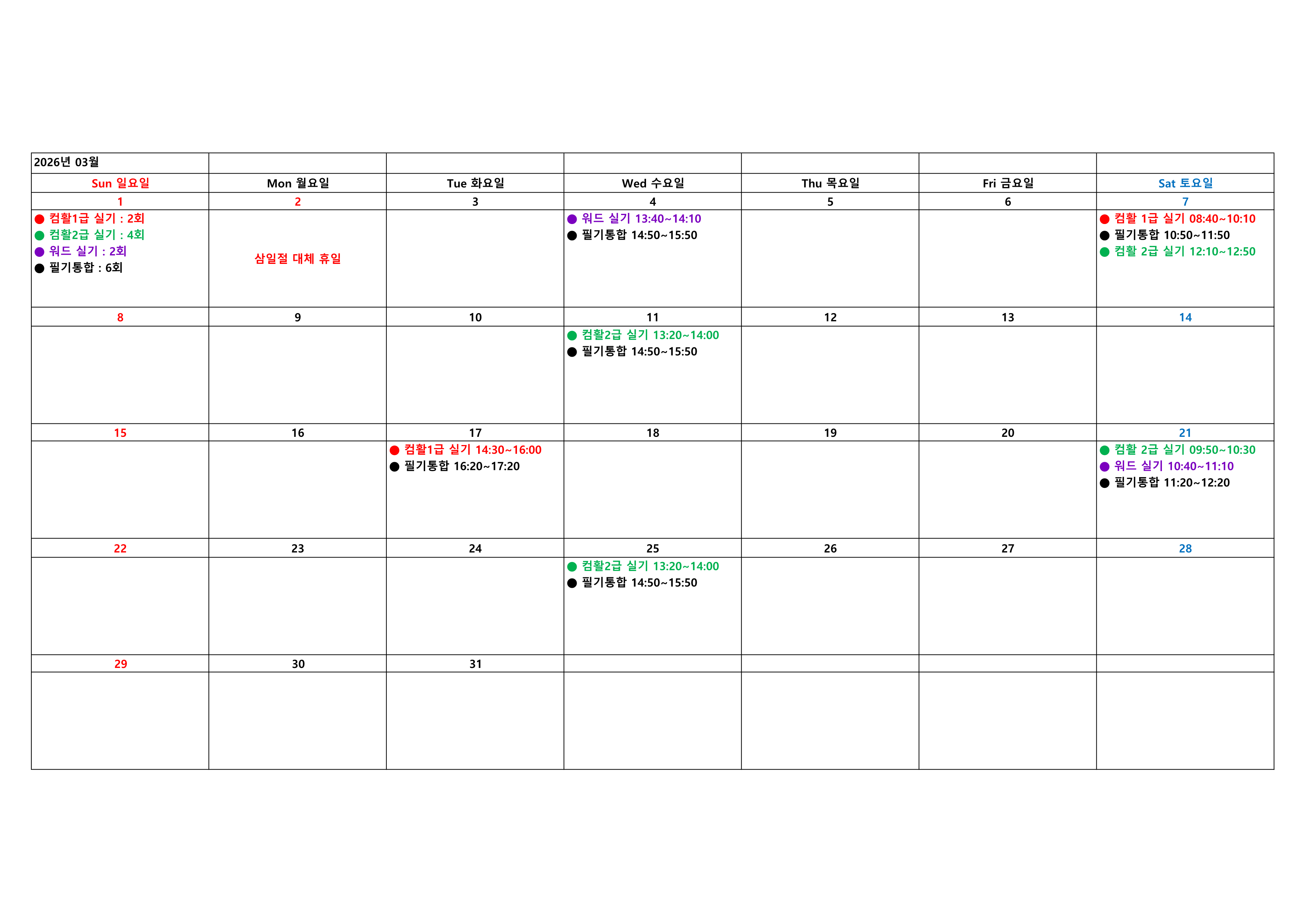 | 제목 | 26년 3월 통영상공회의소 상시시험 일정 | ||