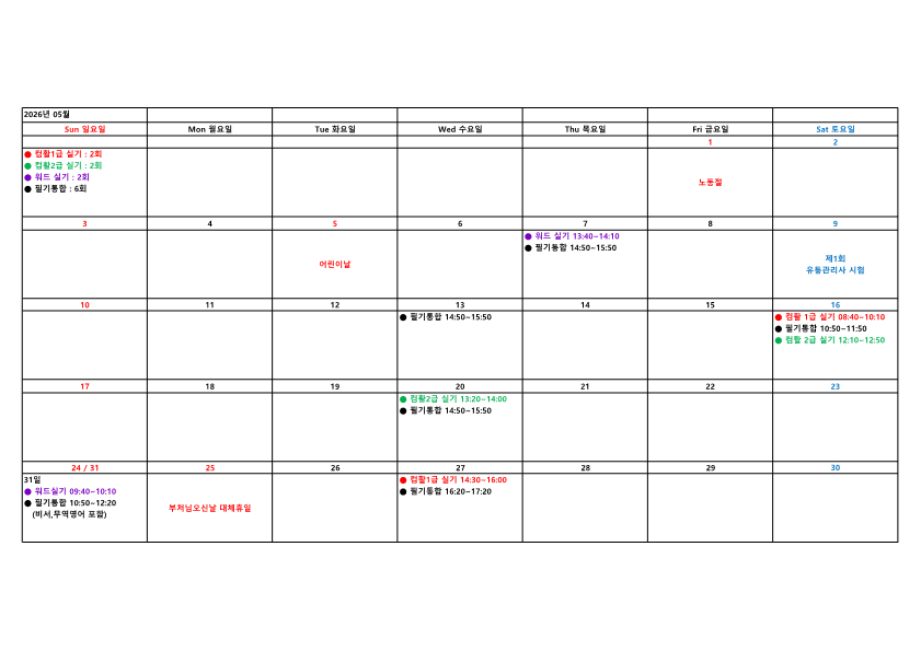 통영상공회의소 2026년 5월 상시시험 일정표를 게시합니다.